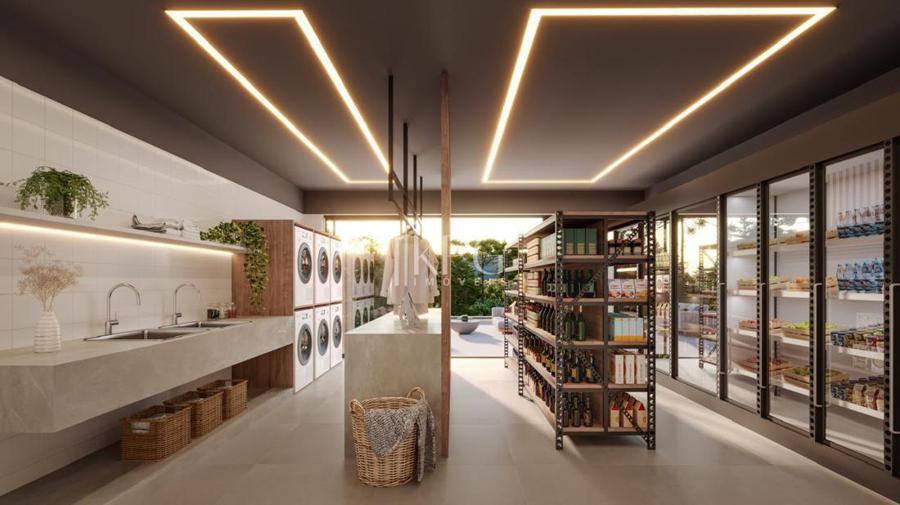 Apartamento 01 dormitório, com terraço, living social sendo estar e jantar, esperas para lareira, sacada balcão, banheiro social, cozinha americana com churrasqueira, área de serviço, 01 vaga de garagem.
