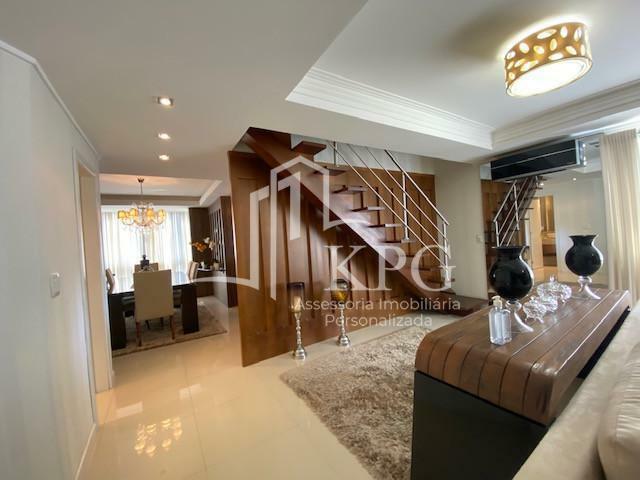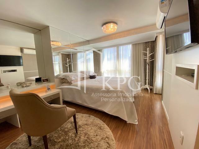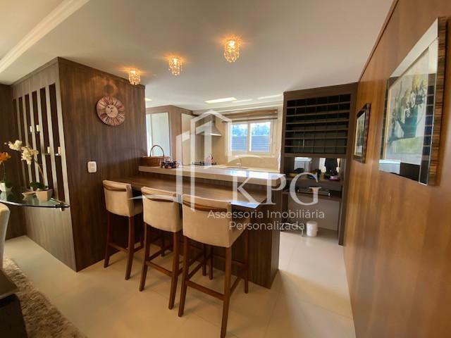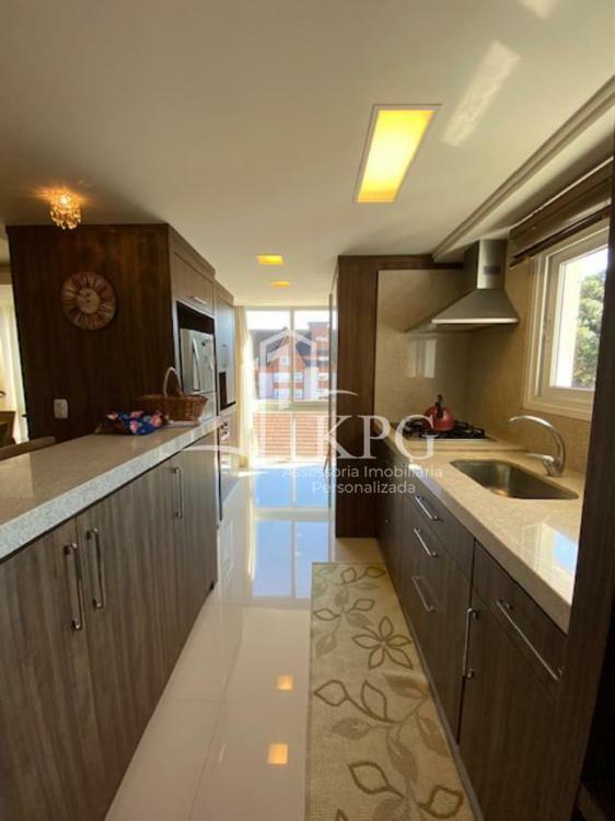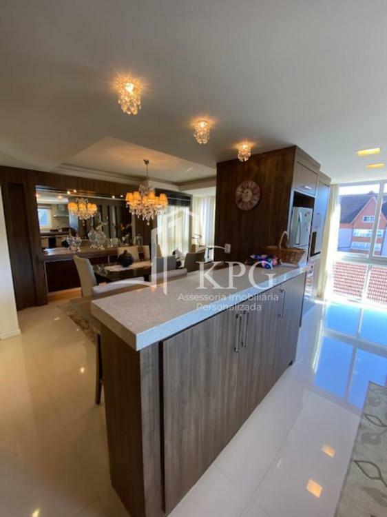 Apartamento de cobertura, sendo distribuído em três dormitórios (uma suíte), banheiro social e lavabo, sala de estar e jantar com lareira, cozinha integrada, churrasqueira, espera para calefação, água quente e splits instalados, teto em gesso, mobiliado e decorado, uma vaga de garagem. Localizado a passos da Rua Coberta em Gramado.