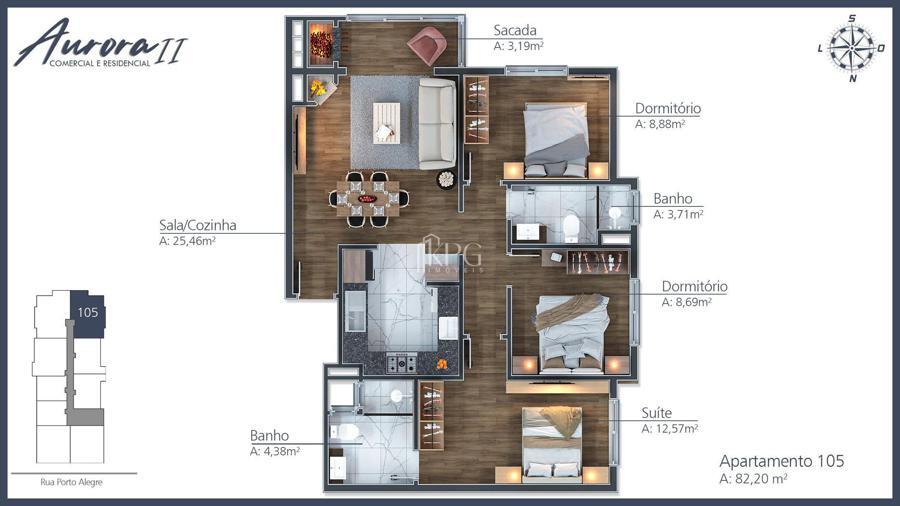 Localizado em Gramado, no bairro Moura, há 5 minutos do Centro Apartamentos compostos por um dormitório uma suíte dois dormitórios sendo, uma suíte e três dormitórios, sendo uma suíte todos com churrasqueira, esperas para lareira e Split, esquadrias em PVC com vidro duplo, pisos laminado e porcelanato, massa corrida nas paredes e forro em gesso. Prédio com elevador e 1 box de garagem para cada unidade.