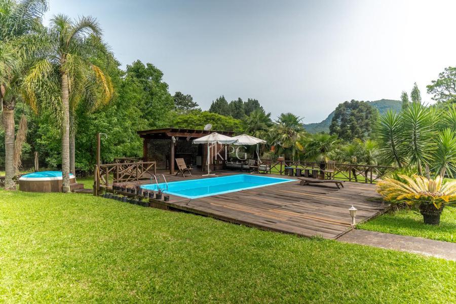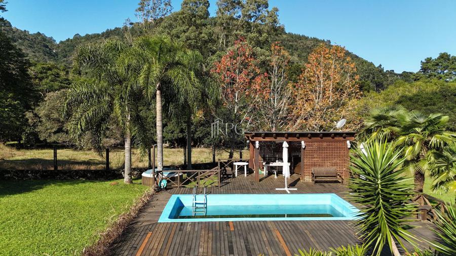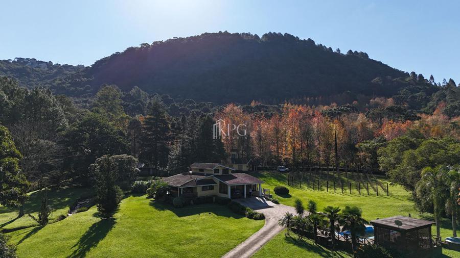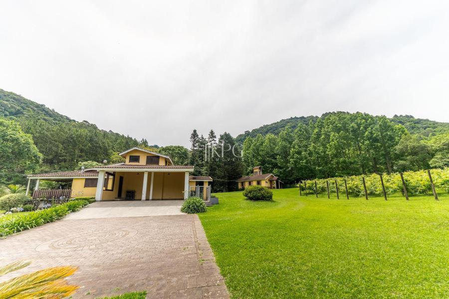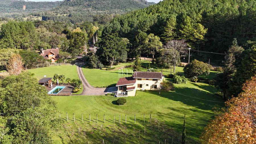 Casa São Valentin, um oásis de lazer e tranquilidade junto ao centro de Gramado Terreno de 8.862 , localizado na Linha 28, ao lado do Garden Park Gramado e a apenas 2.3 Km da Rua Coberta. Casa Principal com 250m , 4 quartos, 2 banheiros, 1 vaga de garagem coberta, varanda coberta, 1 canil coberto sala cozinha e lavanderia, casa toda equipada com alarme, com 4 ar condicionado frio/calor e uma lareira a lenha. Casa de hóspedes com 90m , possui 2 quartos, 2 banheiros, cozinha e sala conjugada, uma suíte garagem coberta e lavanderia toda equipada com alarme com 2 ar condicionado split. Área de Lazer com 150m , possui piscina aquecida e iluminada com sistema UV sem cloro, Jacuzzi para 4 pessoas, deck da piscina em madeira, e churrasqueira coberta. Galpão Campeiro com 60m . A propriedade possui um lago natural, um parreiral com 250 plantas em produção anual de 150 litros de suco de uva orgânico, a agua que abastece toda a propriedade e oriunda de um poço artesiano legalizado com os órgãos públicos e todas as licencias em dia com um PH de 7.5, manutenção do poço em dias, toda a área está cercada com taipa e postes tratados com tela de proteção, portões eletrônicos.